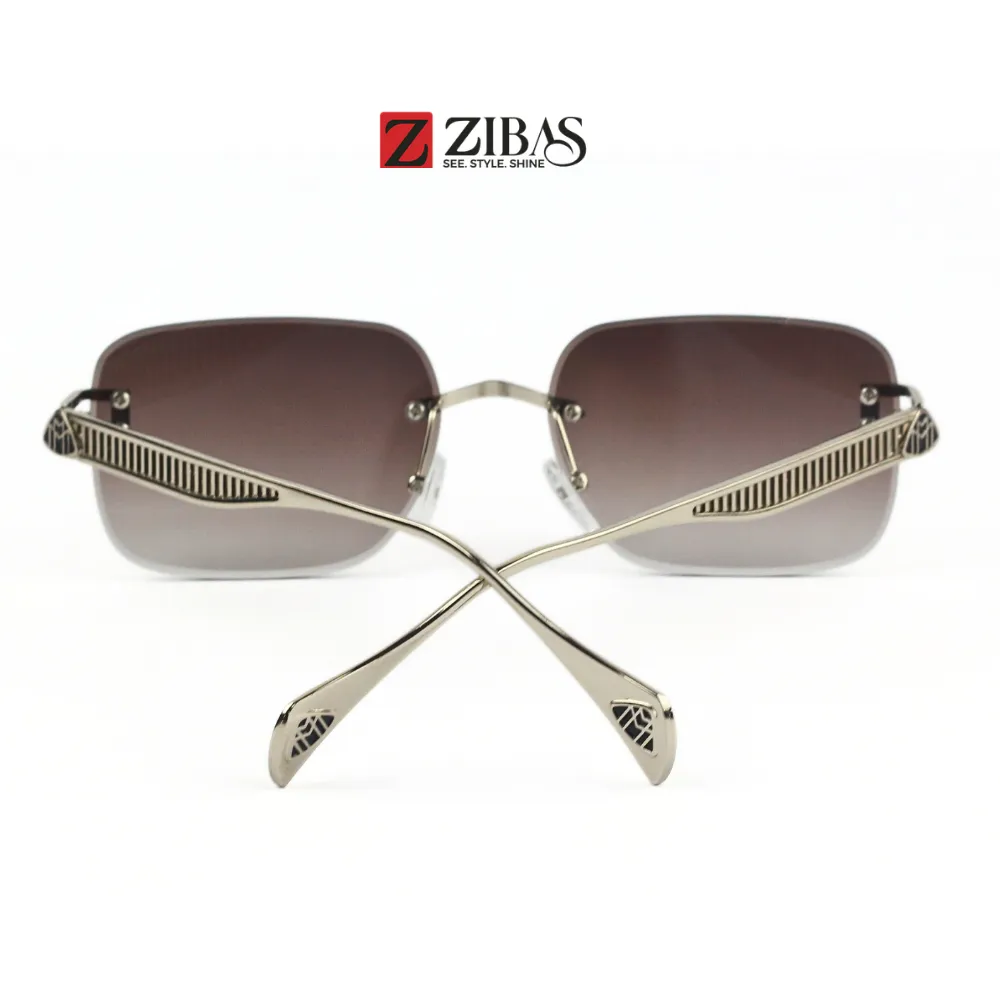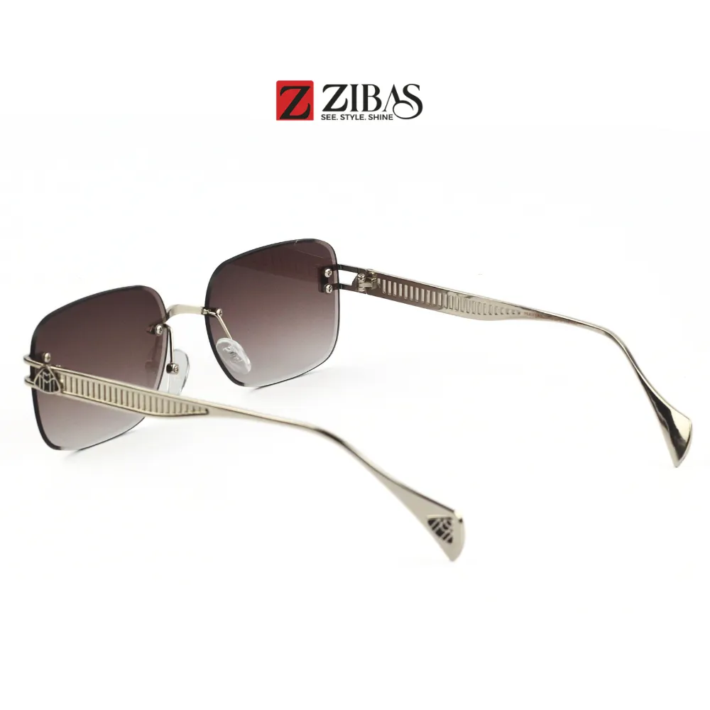 Unisex Rimless Gray Gradient Lens with Silver Frame Rectangular Sunglasses – UV400 Protection | Zibas Urban